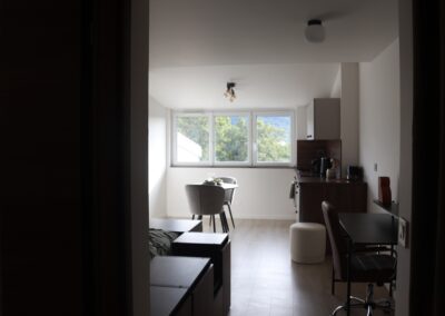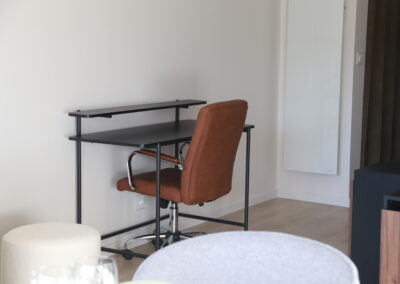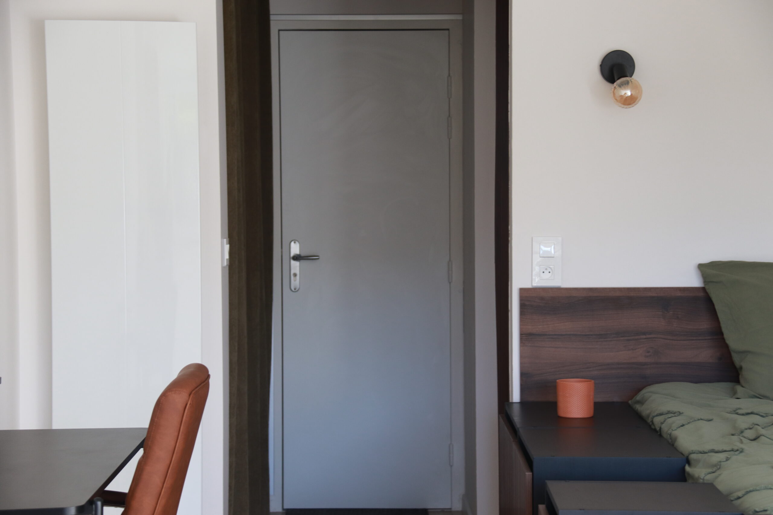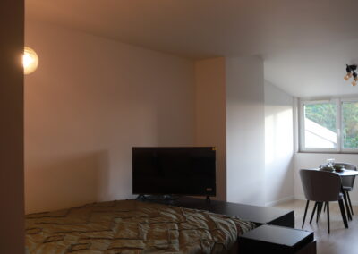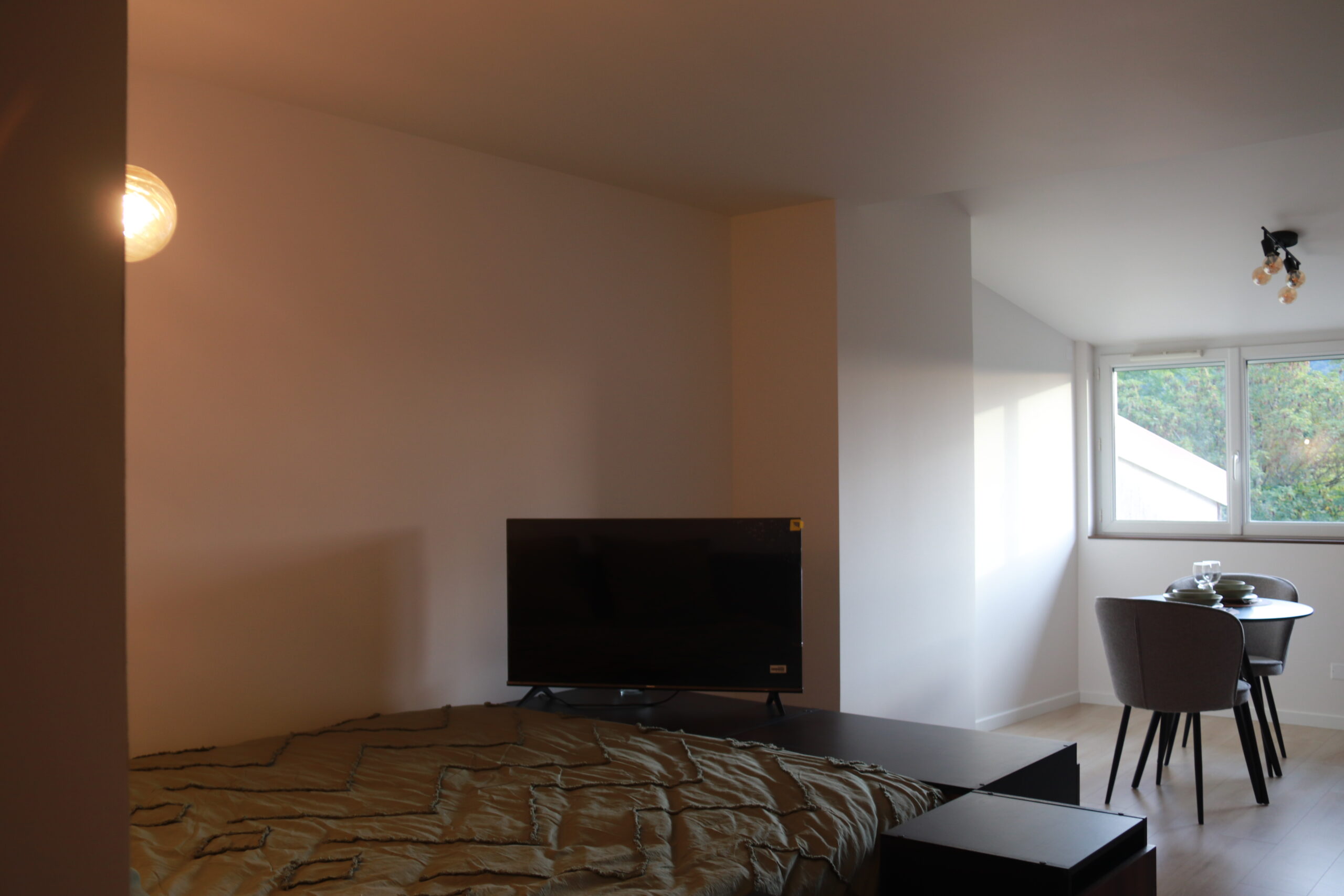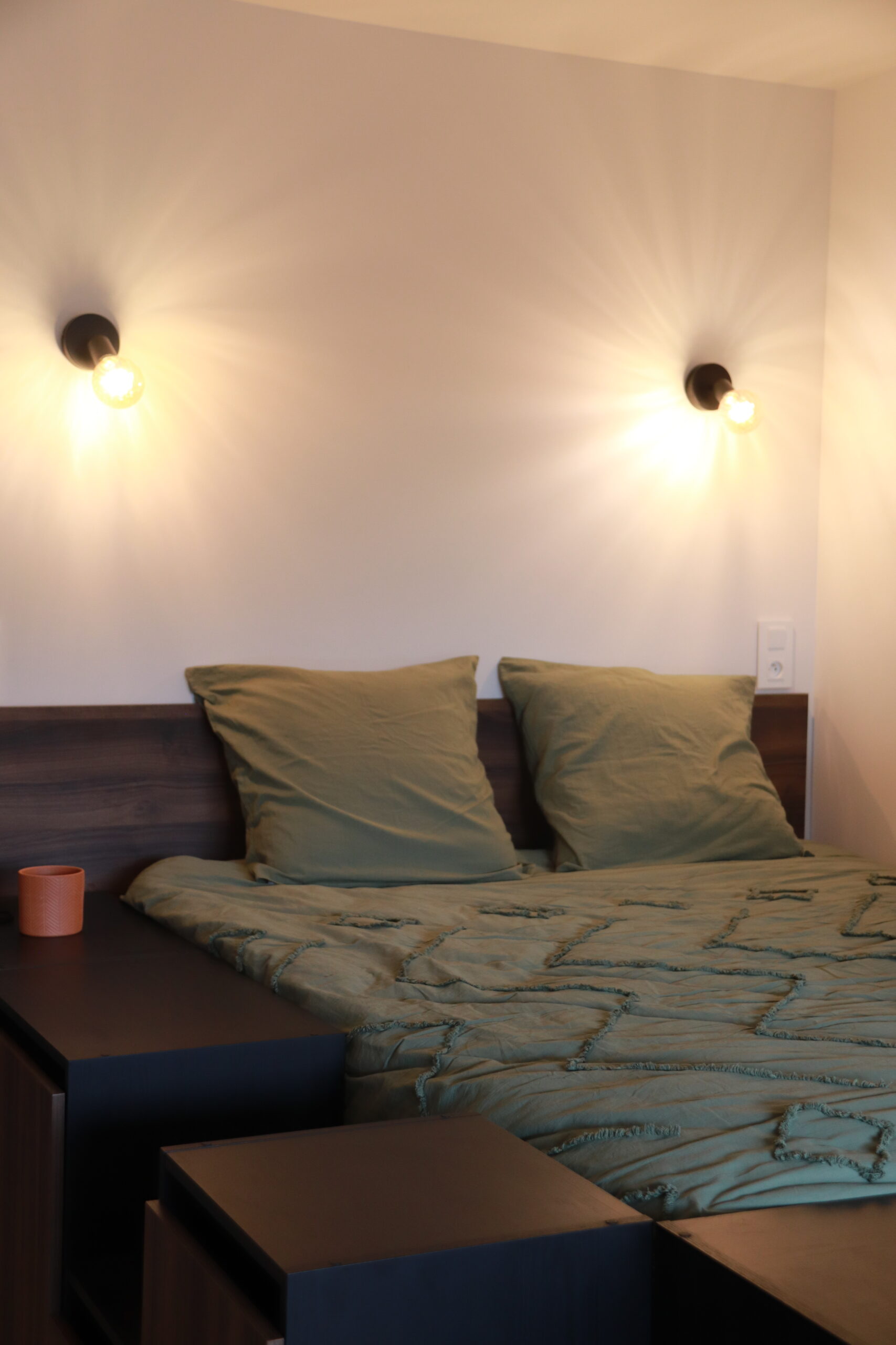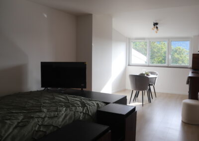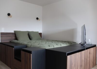 Conçu dans les moindres détails, ce meublé se présente comme une suite moderne avec lit double, cuisine équipée, coin repas, salon et salle de bain. Le lit, bordé de rangements intégrés, optimise l’espace et invite au repos. Véritable havre de paix, ce studio conjugue confort et ingéniosité.