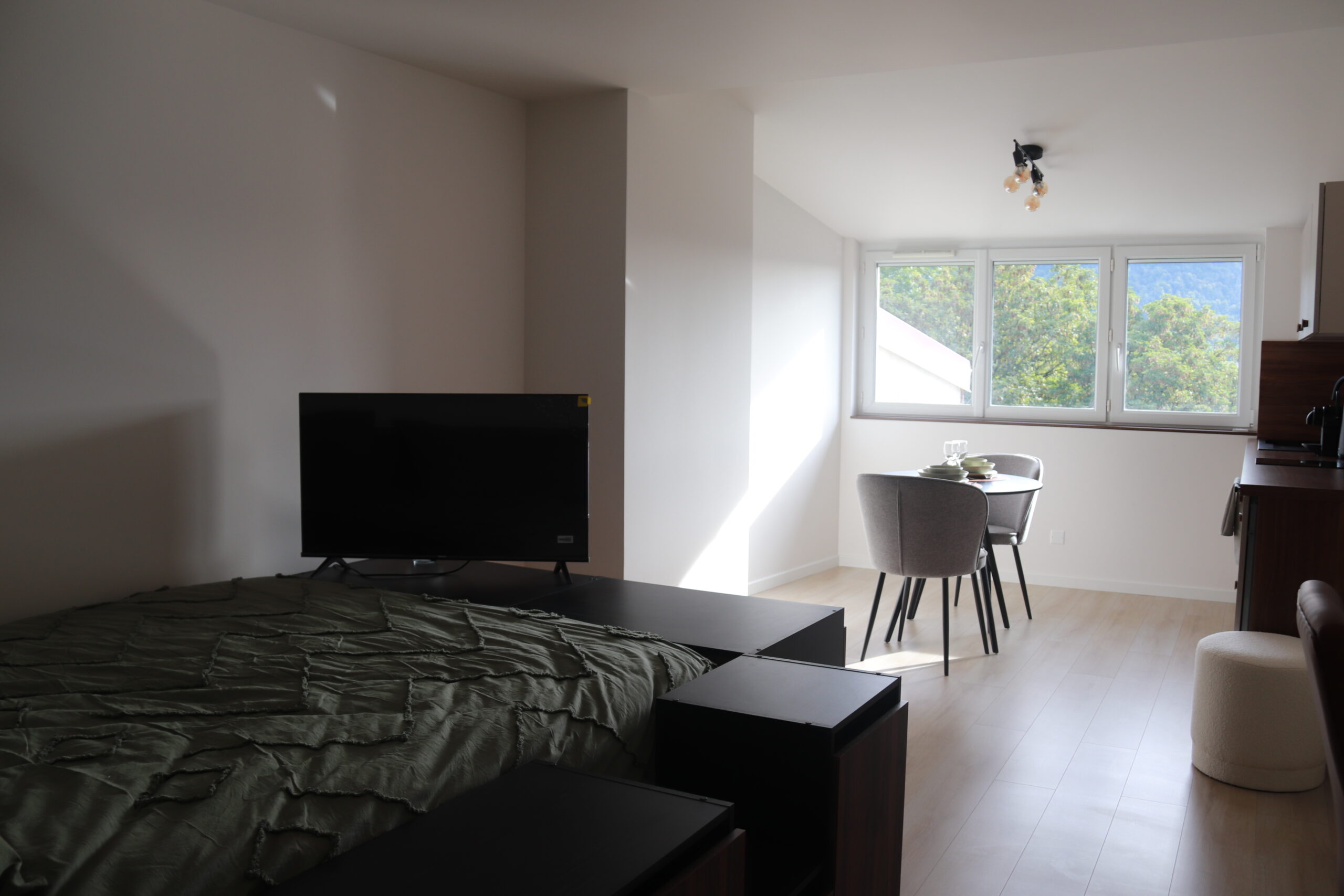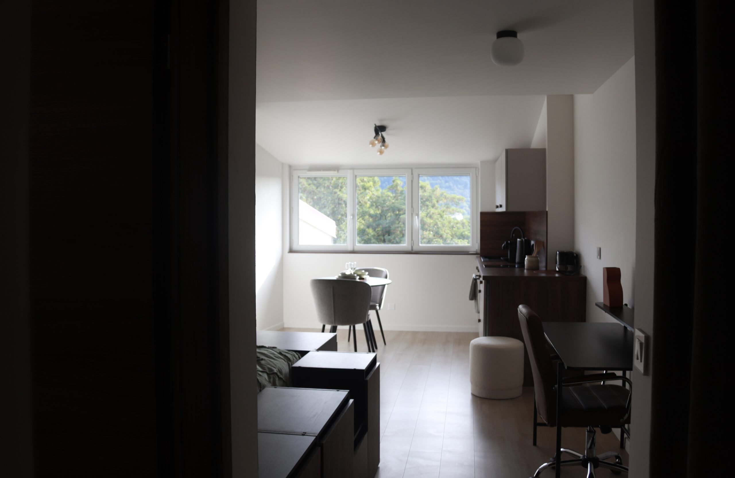 Ce studio de 30 m², au cœur de Champagnole dans le Jura, a été intégralement repensé pour devenir un pied-à-terre pratique et raffiné. Chaque détail a été pensé pour créer un lieu unique, équilibré et accueillant.